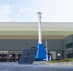 Tetra is a multipurpose, zero-emission solar-powered CCTV tower with 360° monitoring via its four fixed ‘bullet’ cameras. Ideal for monitoring small to mid-sized utilities, infrastructure, and construction/demolition sites. It boasts a low carbon footprint and cutting-edge AI technology.